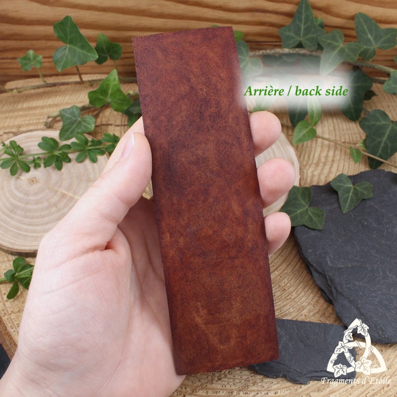 Cuir tannage végétal et teintures à base d'eau.