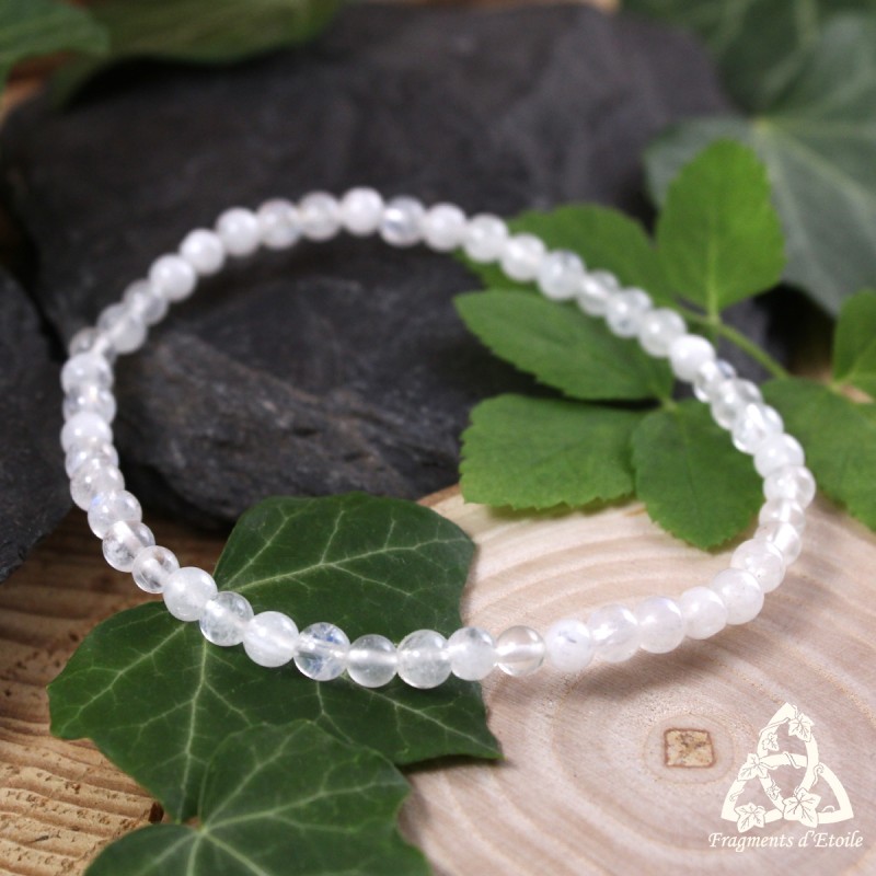 Laissez la lumière vous accompagner avec Rehyn Lumière Elfique, un bracelet délicat composé de fines perles de Péristérite blanche à transparente, comme un éclat féerique capturé dans le creux de la main.